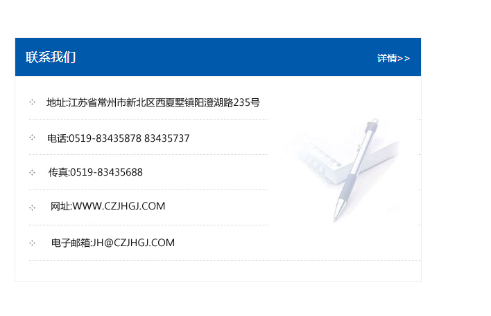 傳真:0519-83435688    郵編:213135    網址:WWW.czjhgj_com.hongroupth.com    電子郵箱:JH@czjhgj_com.hongroupth.com